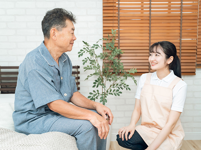 ベッドからの起き上がりや就寝時の身体の介添え、寝具などの調整のお手伝いをいたします。