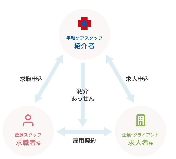施設・病院の職員として、当社に登録している「介護士」「看護師」を紹介します。